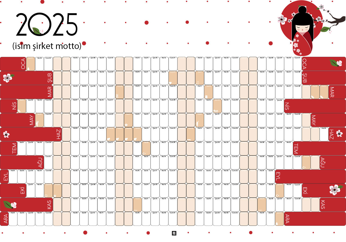 Geisha Kişiselleştirilebilir Duvar Takvimi 2025