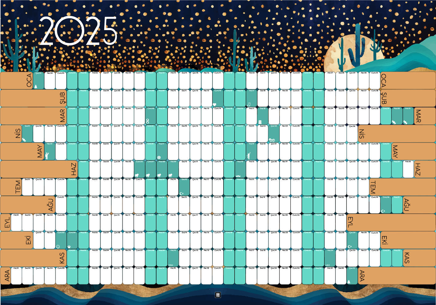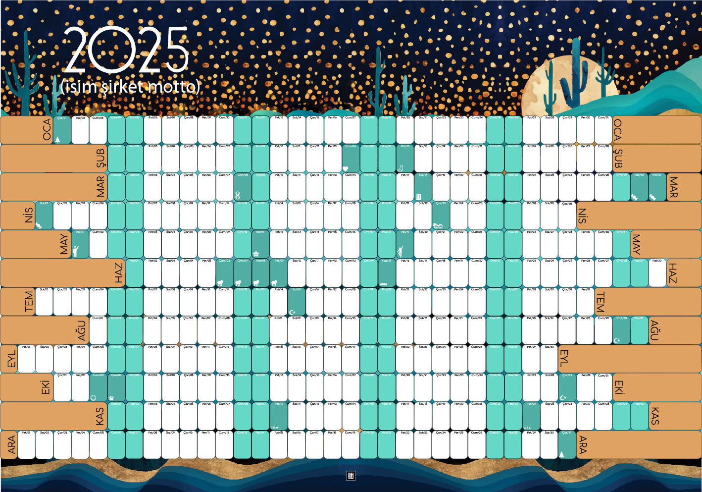 Moon Love Kişiselleştirilebilir Duvar Takvimi ve Planlayıcı 2025