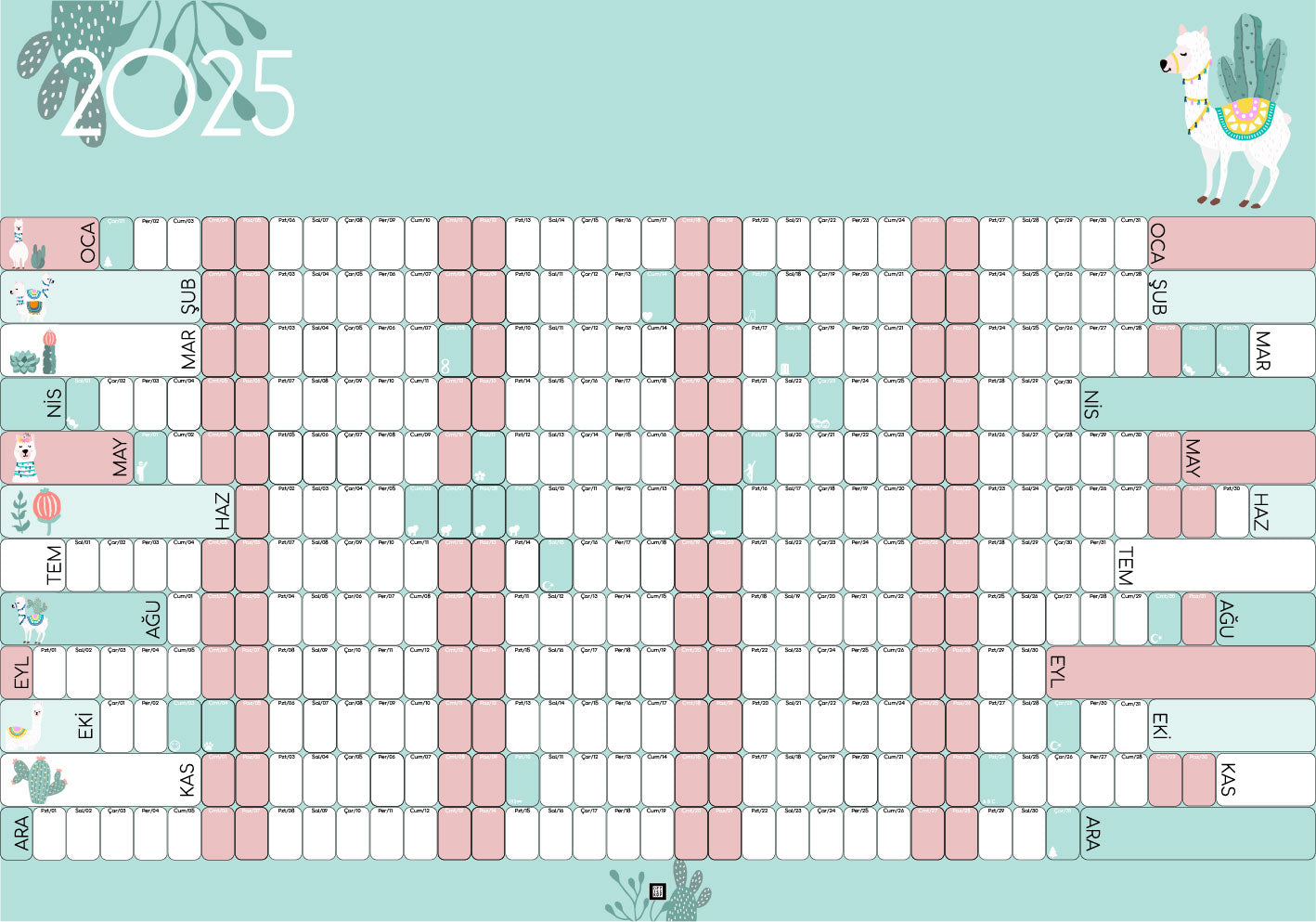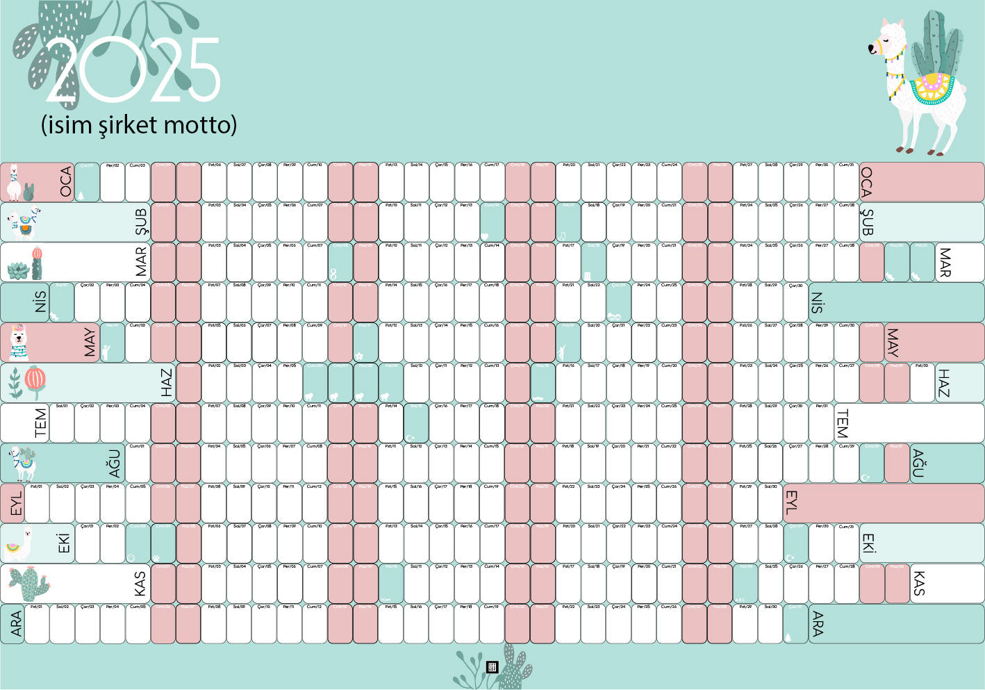 Lama Kişiselleştirilebilir Duvar Takvimi ve Planlayıcı 2025