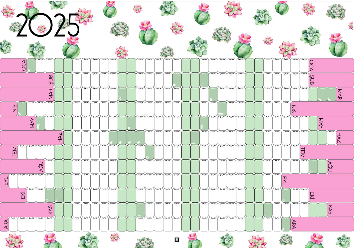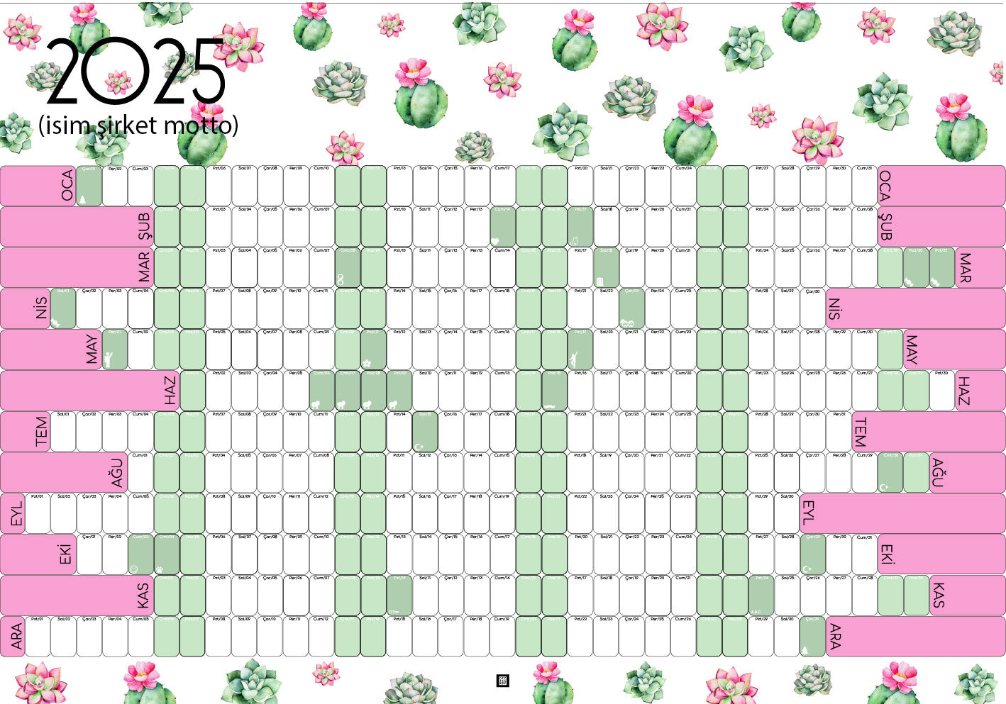 Cactus Kişiselleştirilebilir Duvar Takvimi ve Planlayıcı 2025