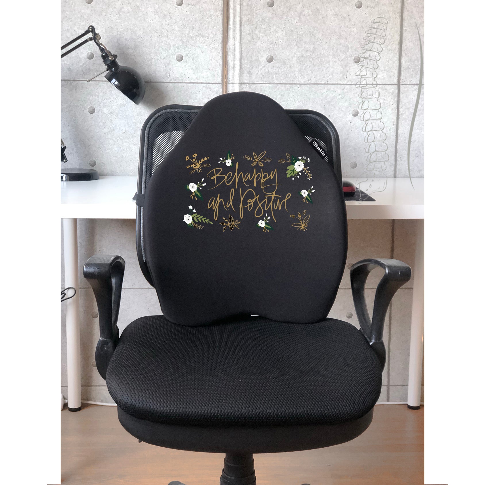 Officekup Visco Bel Destek Gamer Oyuncu Koltuk Yastığı- Be happy Siyah